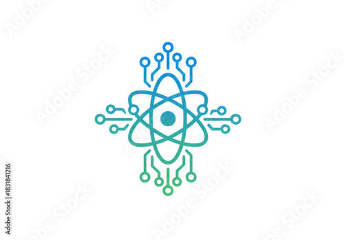 Blue Green Gradient Atom Science Circuit Board Technology Icon SVG on Transparent Background