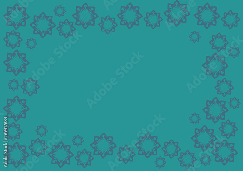 Blue Green Vector Background with Floral Pattern Border