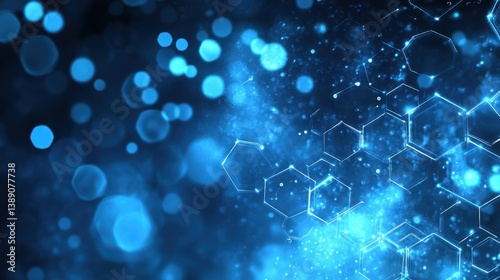 Blue hexagonal abstract background with bokeh lights