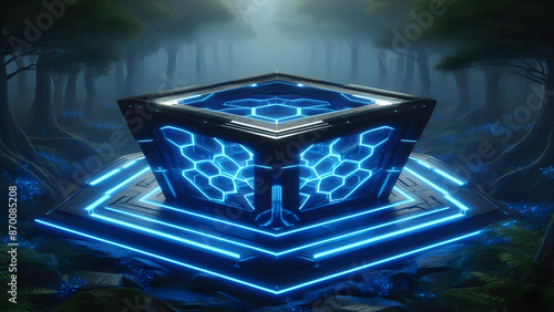 Blue hexagons abstract background with blue lights