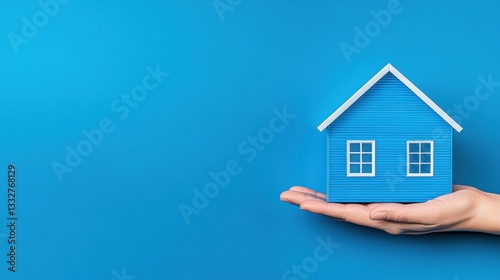 Blue House Model in Hand: Dream Home Concept