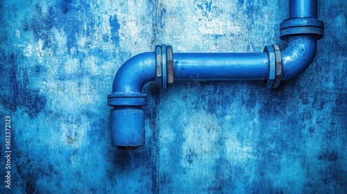 Blue Industrial Pipe Against Textured Wall with Grunge Effect