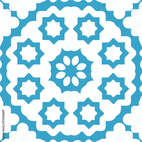 Blue Islamic Geometric Pattern On White Background Circular Design With Star Motifs Intricate Arabesque Style Art