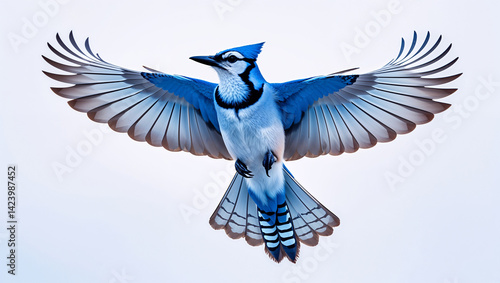 Blue Jay Bird Spreading Wings Mid Flight Soaring In The Air