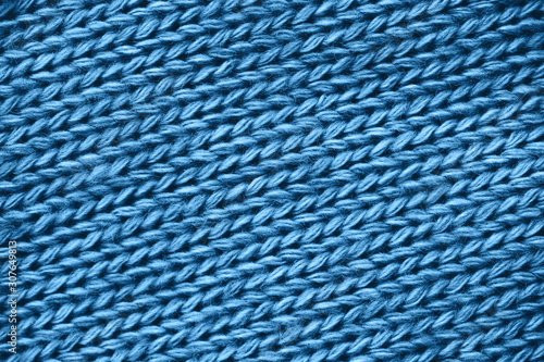 Blue knitting sweater pattern close up.