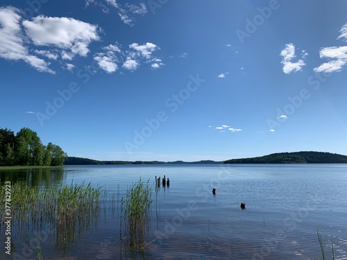 Blue lake and sky background