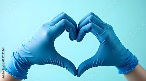 Blue Latex Gloves Creating Heart Shape for Medical Care Symbolism
