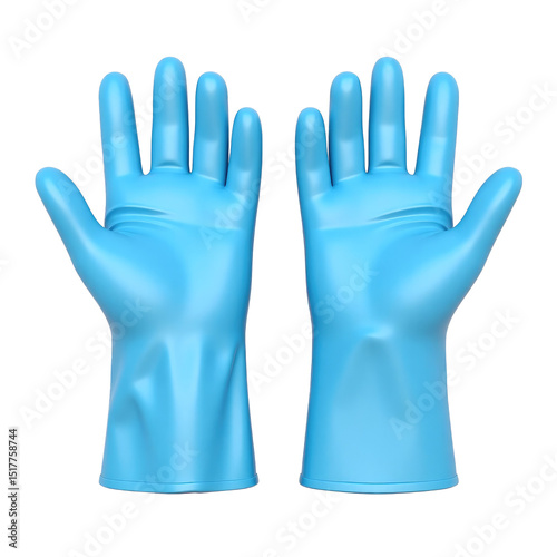 Blue latex rubber gloves positioned palm up on a transparent background highlighting the clean design and texture suitable for hygiene and protection purposes.