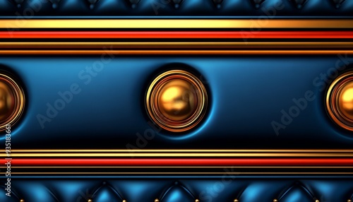 Blue Leather Upholstery with Gold Trim and Concentric Circles