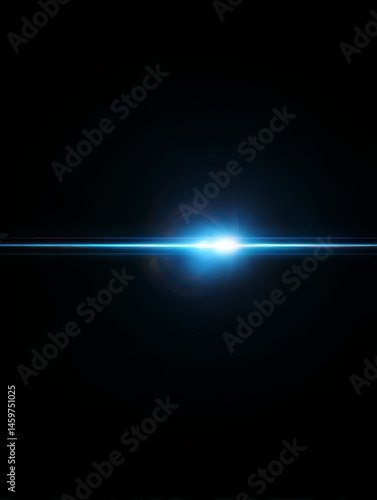 Blue lens flare aligned horizontally on black background with gradient glow, fine diffraction and cinematic clarity Generative AI