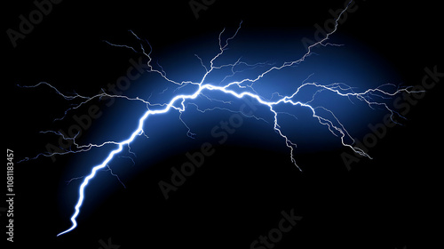 Blue Lightning Bolt on Black Background, electricity, energy, power, storm, thunder
