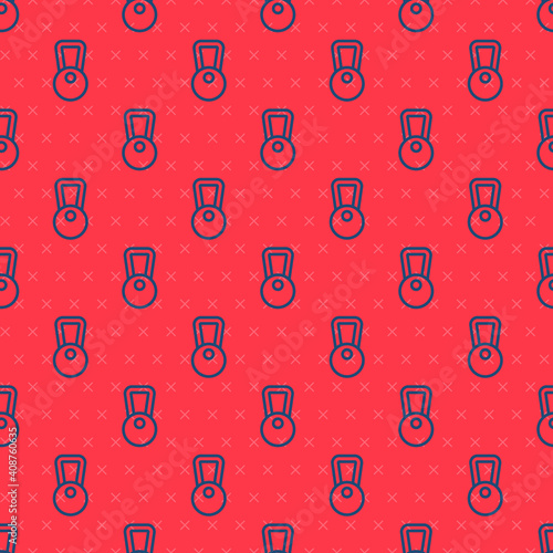 Blue line Kettlebell icon isolated seamless pattern on red background. Sport equipment. Vector.