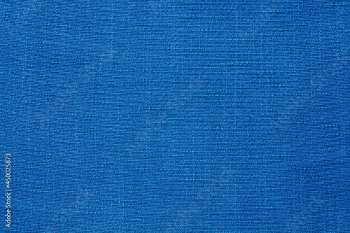 Blue linen fabric cloth texture for background, natural textile pattern.