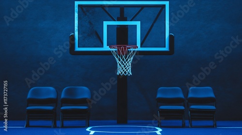 Blue Lit Basketball Court Night Scene Empty Chairs