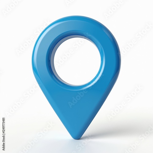 Blue location marker icon isolated on white background. Modern tech map pin for navigation app. Visual representation of geographic point. 3D model for digital location services. Useful for online