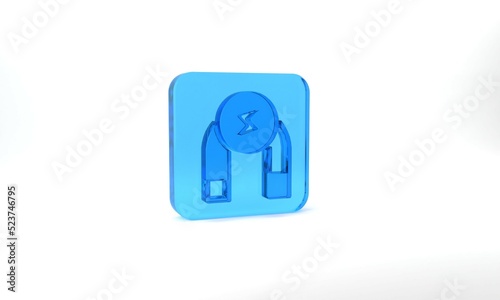 Blue Magnet icon isolated on grey background. Horseshoe magnet, magnetism, magnetize, attraction. Glass square button. 3d illustration 3D render