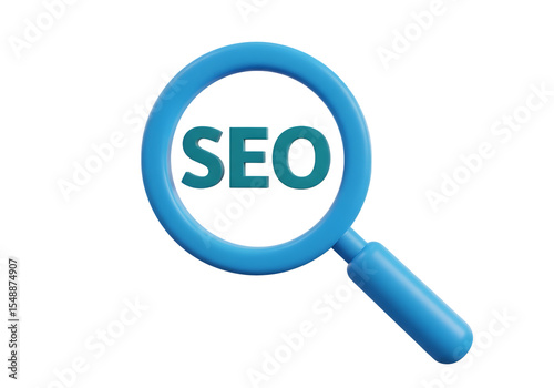 Blue Magnifying Glass S E O Teal Text isolated on a transparent background