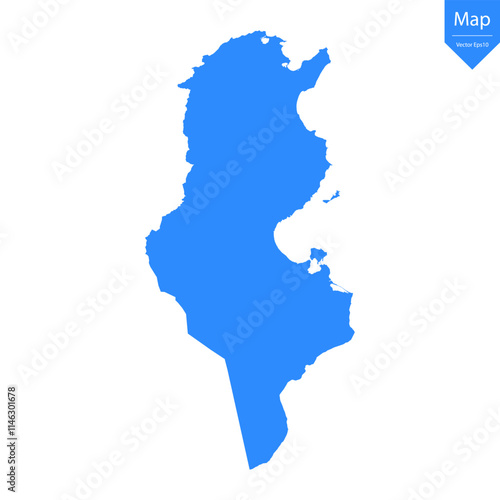 Blue map of Tunisia isolated on white background. Vector illustration eps10.