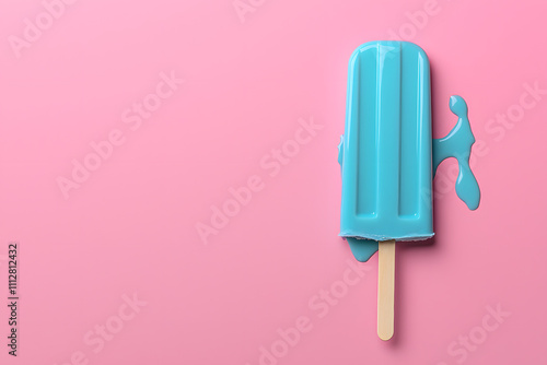 Blue Melted Ice Cream on a Stick, Dripping with Soft, Colourful Texture, Creating a Playful and Refreshing Scene
