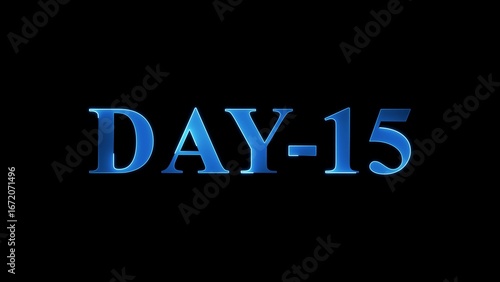 Blue Metallic 3D Text DAY-15 Illuminated Against Black Background day 15