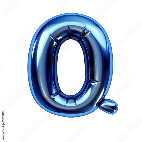 blue metallic Q alphabet balloon Realistic 3D on white background.