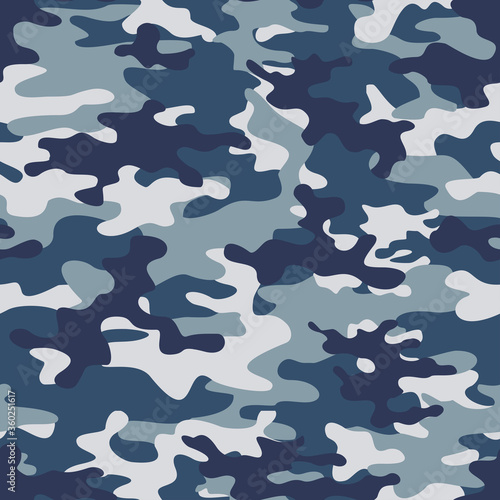 Blue military camouflage pattern seamless stylish for printing clothes, fabrics.