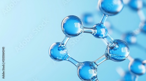 Blue Molecular Structure with Glassy Spheres on Soft Background