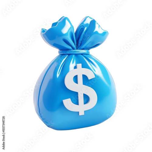 Blue money bag with dollar sign, white background