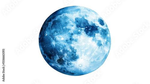 Blue Moon Watercolor Painting, Isolated on Transparent Background, Celestial Art, Space, Lunar, Moon, Watercolor, Art
