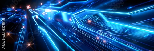 Blue Neon Digital Circuit Pathways