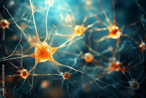 Blue neuron microscopy. laboratory investigation for neuroscience research and scientific analysis