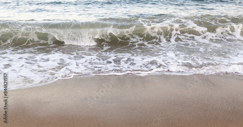 Blue ocean wave on sandy beach. Nature Background, summer time