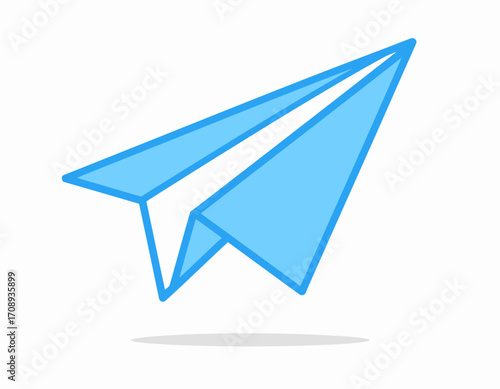 Blue paper airplane flying through the air, vector graphic