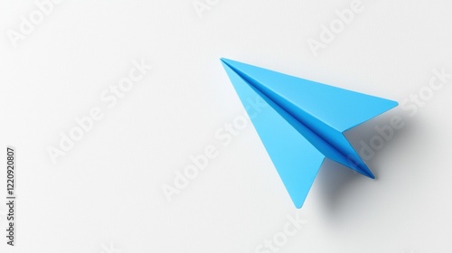 Blue paper airplane on a clean white background