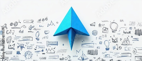 Blue Paper Airplane Symbolizing Business Strategy and Innovation on White Background for Growth and Success