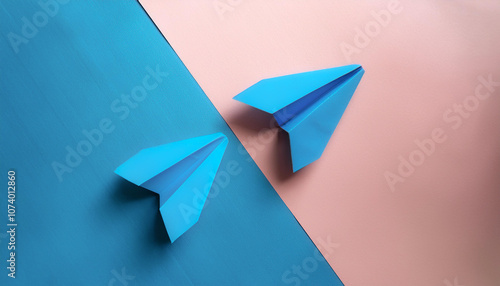 blue paper planes, isolated on a soft blue and Pink Pastel