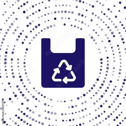 Blue Paper shopping bag with recycle icon isolated on white background. Bag with recycling symbol. Abstract circle random dots. Vector