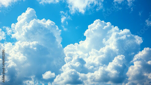Blue pastel sky with soft white cumulus clouds creates a calming morning cloudscape. Symbolizes freedom, peace, hope, and positive energy—ideal for themes of mindfulness and uplifting thoughts.
