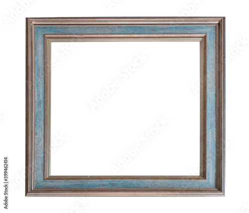 Blue patterned frame with bronze edging for a photo, text, image or painting, isolated on a white background, space for text