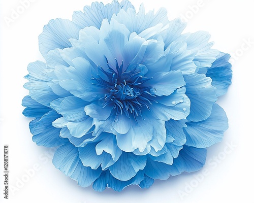 Blue peony flower blossom, isolated white background, floral design, greeting card