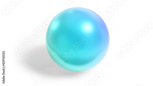 Blue perfect sphere on white background, soft minimal 3D render design.