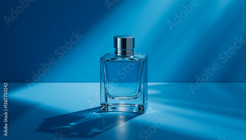 Blue Perfume Bottle With Reflection For Luxury Design Background