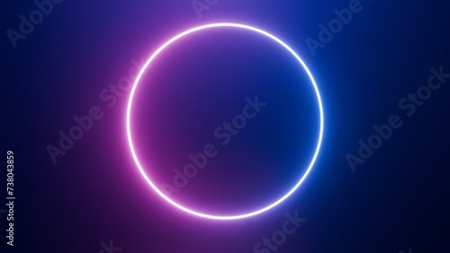 Blue pink neon round frame. Ultraviolet light. Fashion show stage on abstract background. Neon circle.