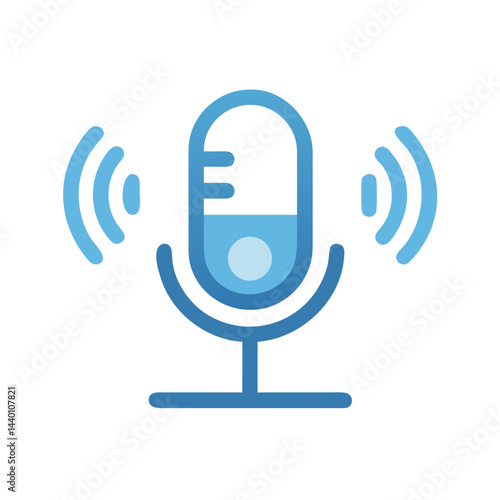 Blue Podcast Microphone with Waves Icon on Black Background Illustration