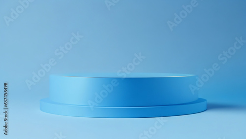 Blue podium on blue background. 3d render. Minimal concept.