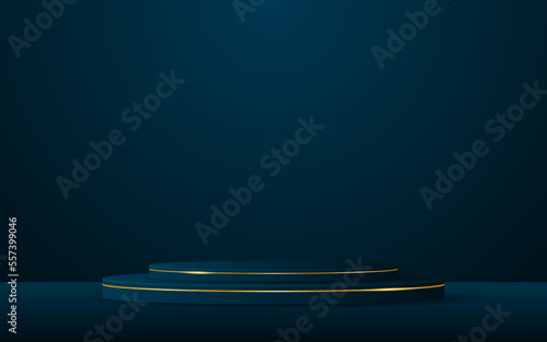 Blue podium with elegant gold lines for product presentation. Cosmetic product display. vector illustration