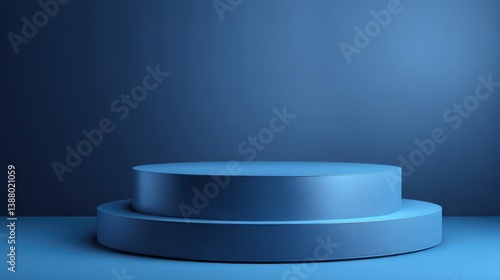 Blue product background stand or podium pedestal on advertising display with blank backdrops. 3D rendering.