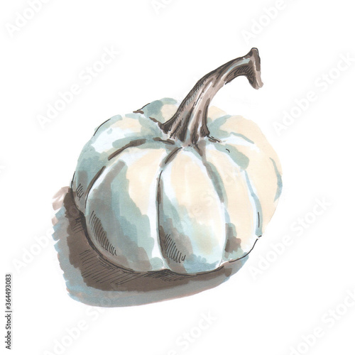 Blue pumpkin hands drawn markers illustration of blue cold drawing isolated on white background. Halloween theme.