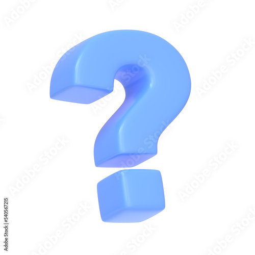 Blue question mark isolated on white background. 3D icon, sign and symbol. Cartoon minimal style. 3D Rendering Illustration