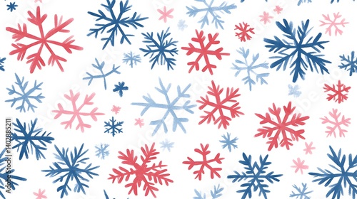 Blue Red Pink Snowflakes Winter Holiday Background Pattern